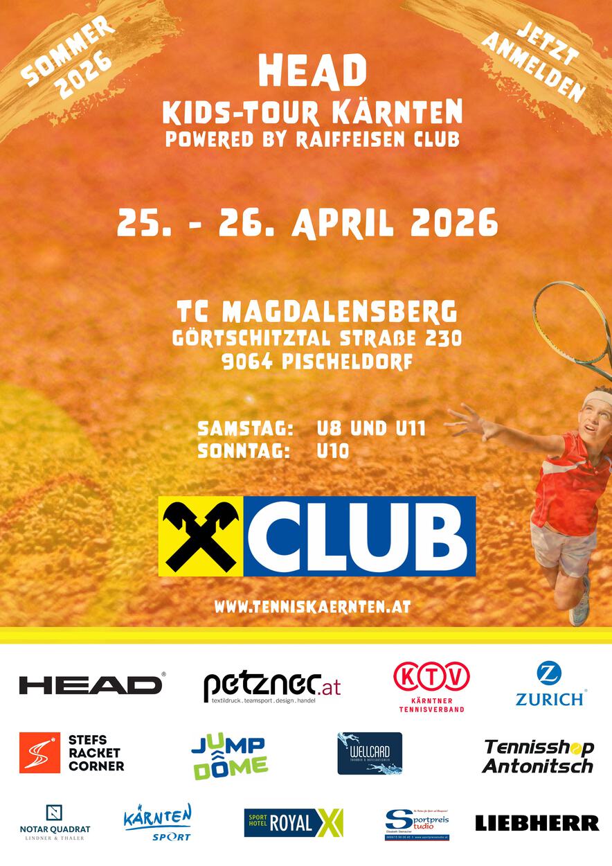 Der Tennisclub Magdalensberg freut sich, Gastgeber der HEAD Kids-Tour Kärnten | Kat. 3 powered by Raiffeisen Club zu sein!